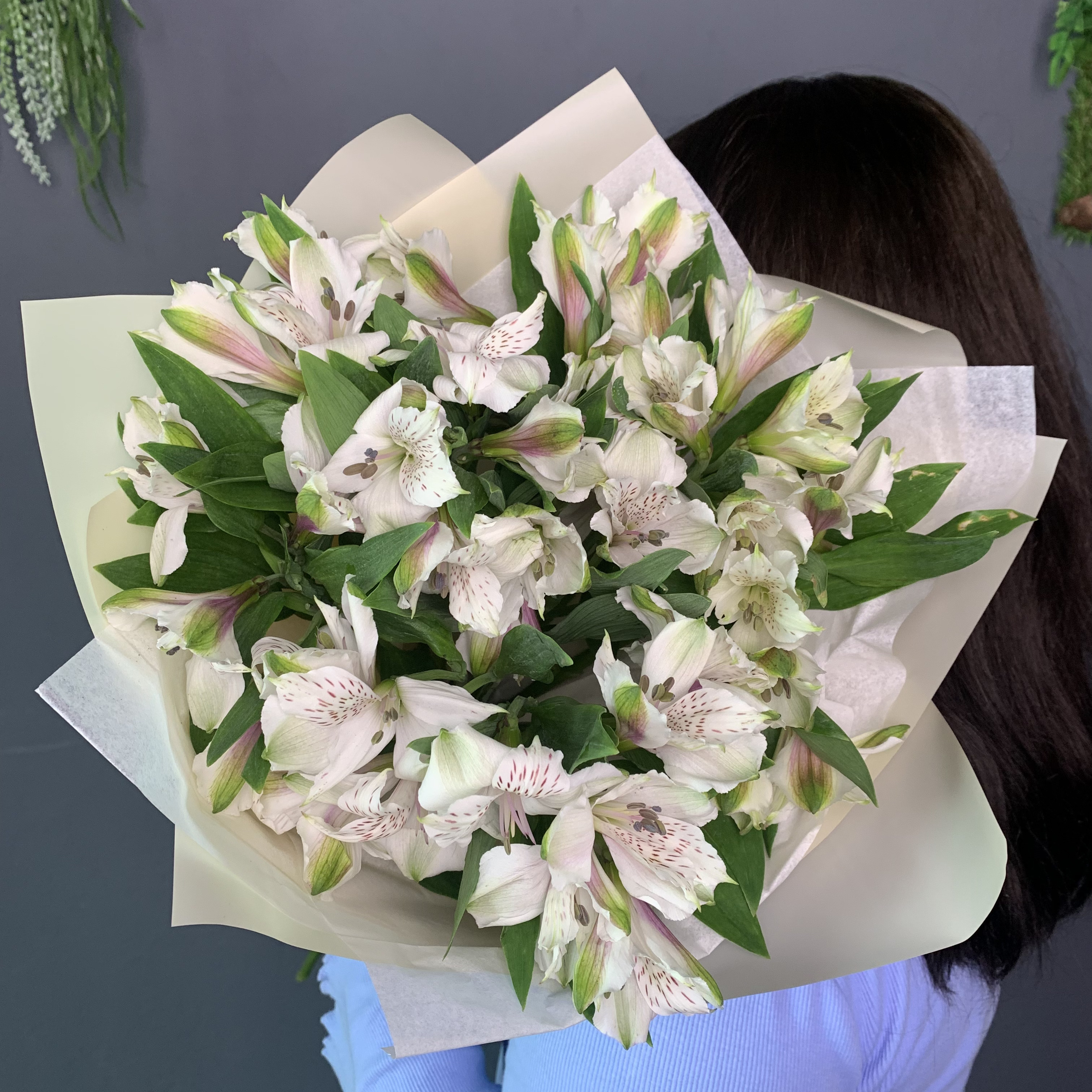 Букет 9 белых альстромерий