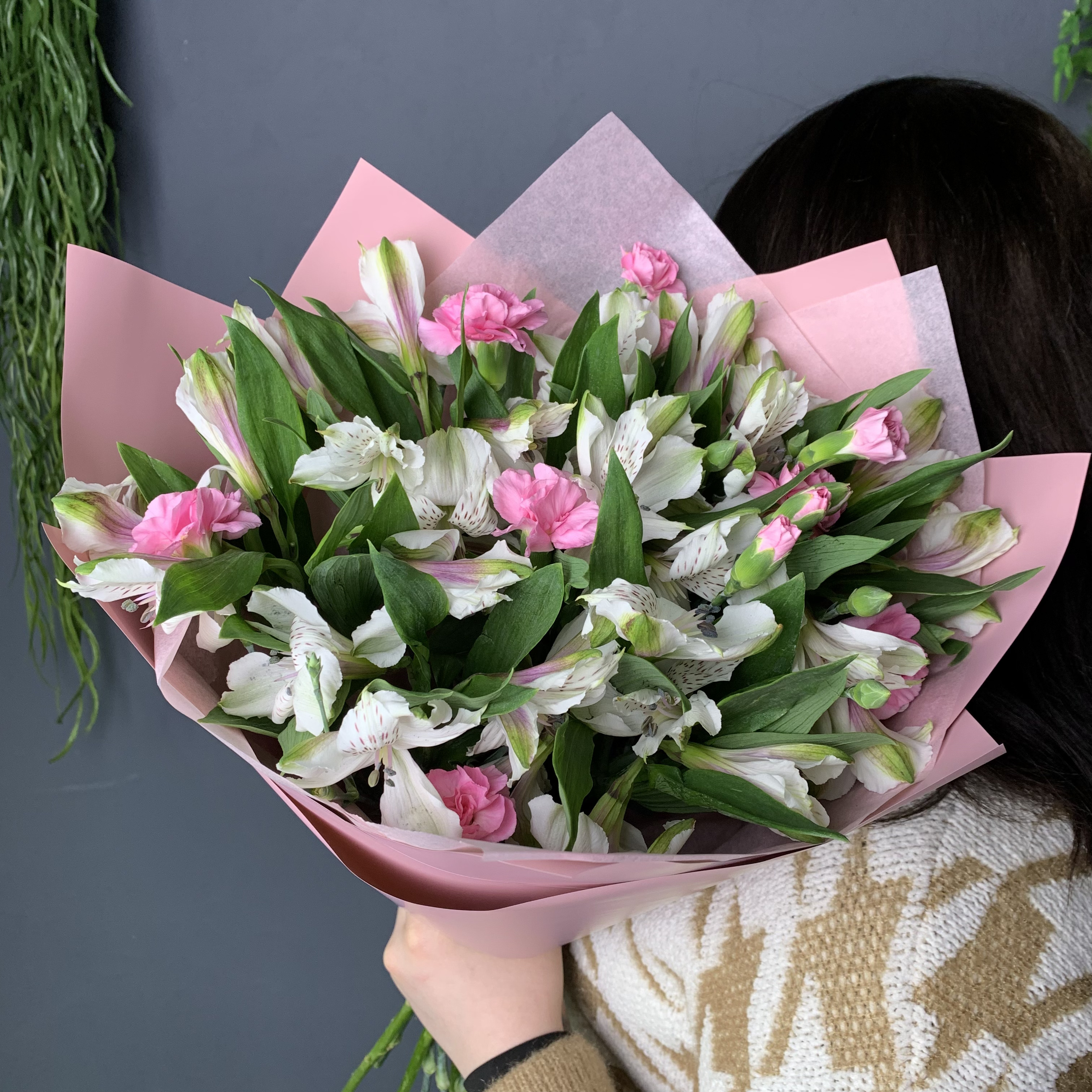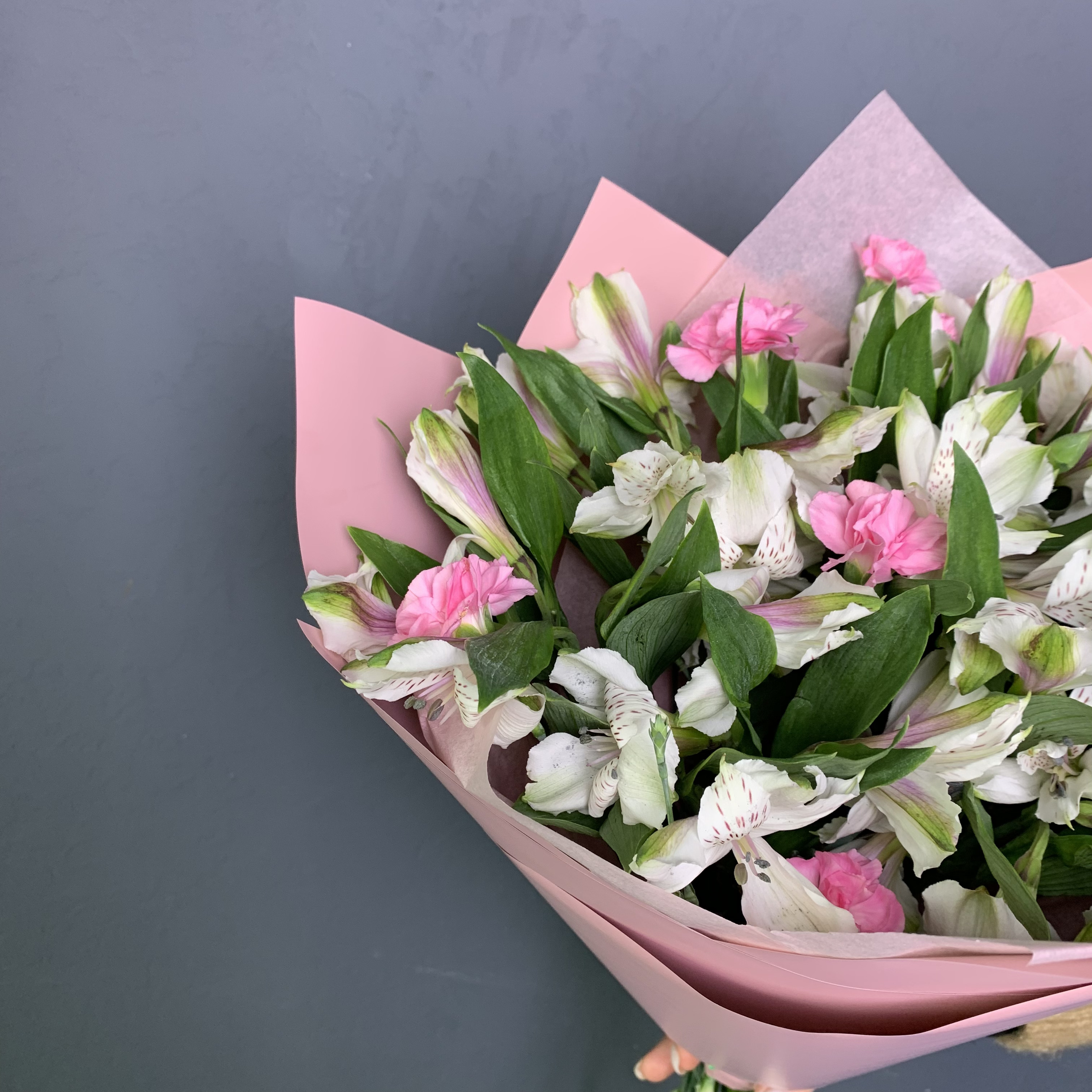 Букет Альмира (альстромерия белая и розовая ,гвоздика кустовая)