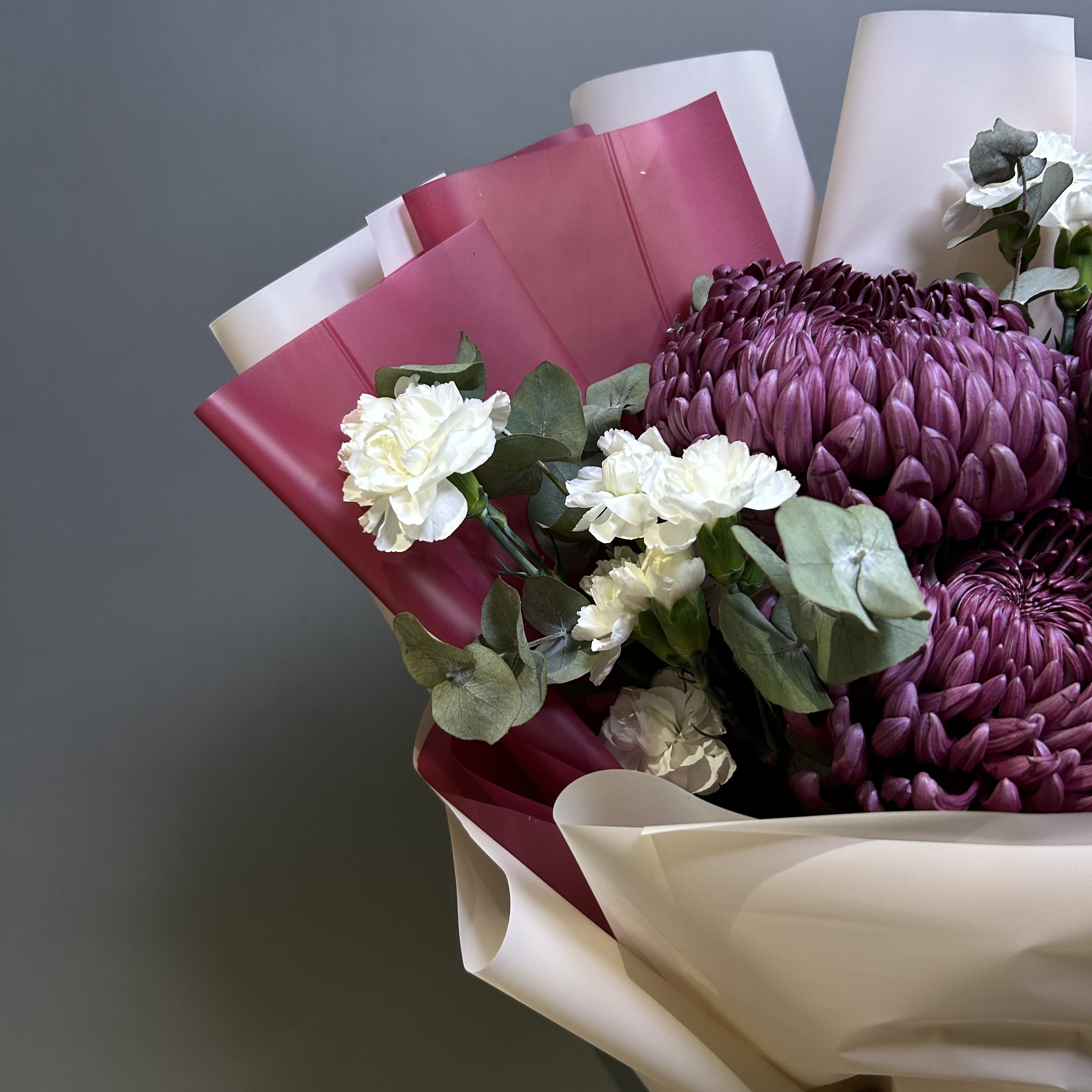 Заполните вазу водой не менее чем на 2/3, добавьте пакетик подкормки для срезанных цветов, который мы приложим к Вашему заказу, и поставьте букет в вазу.