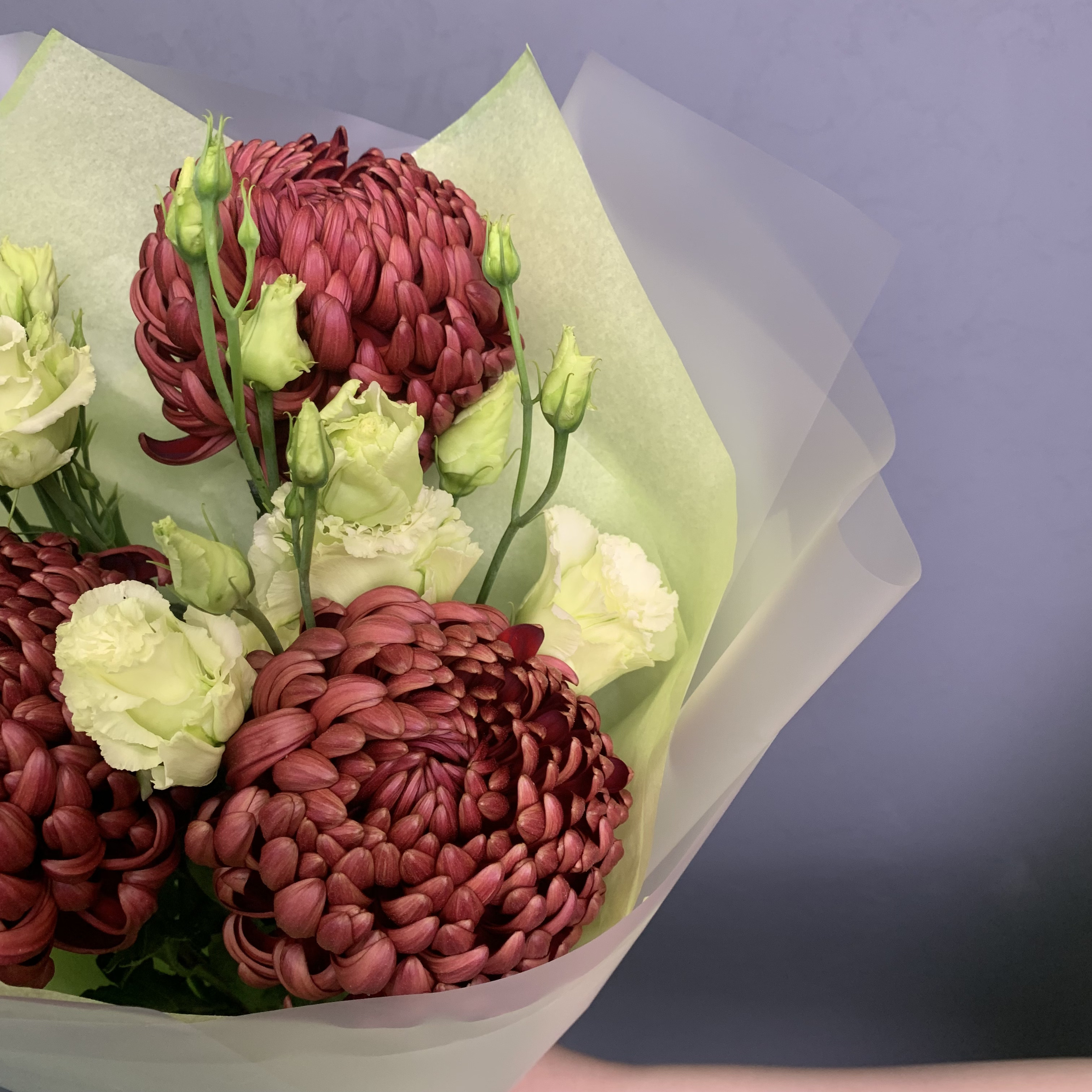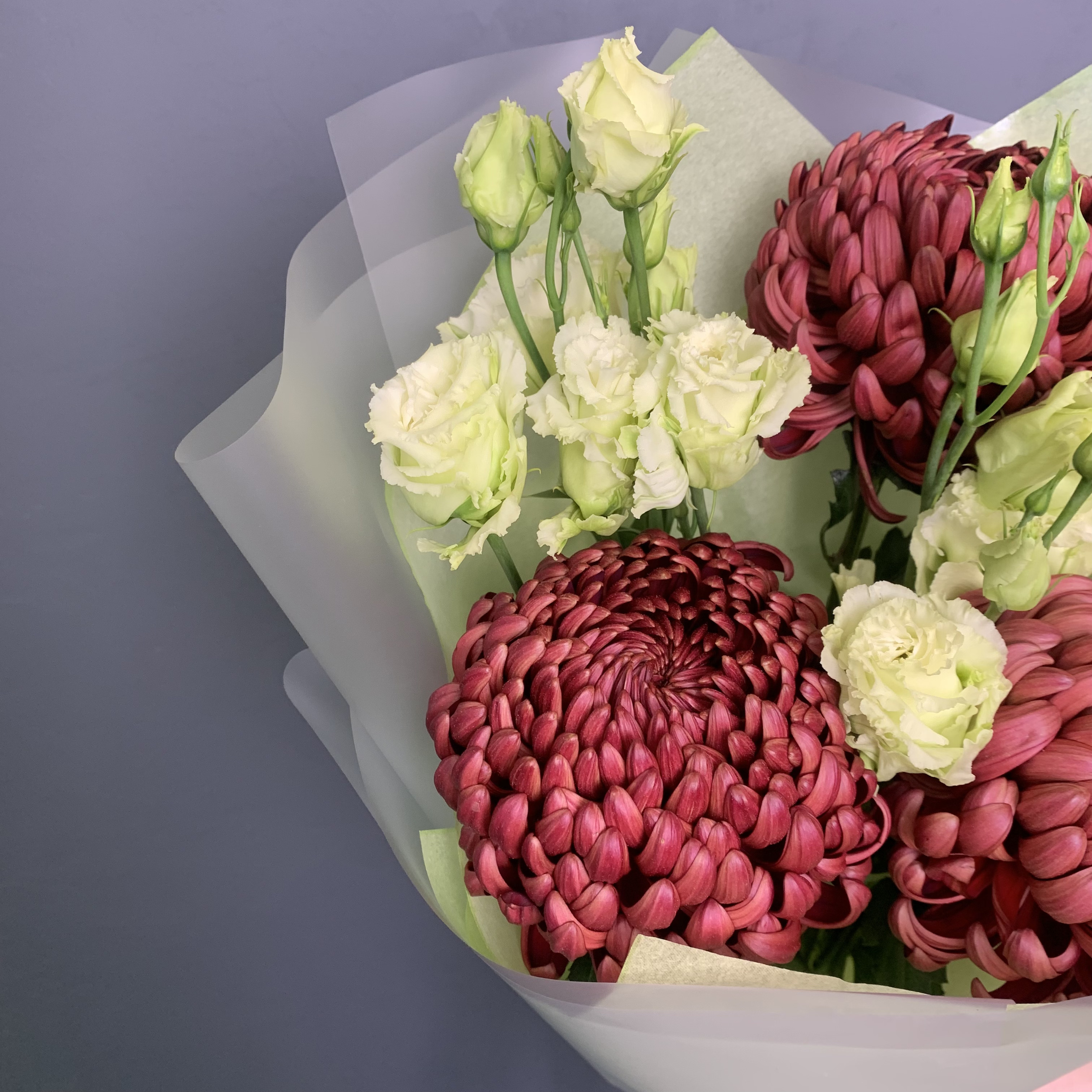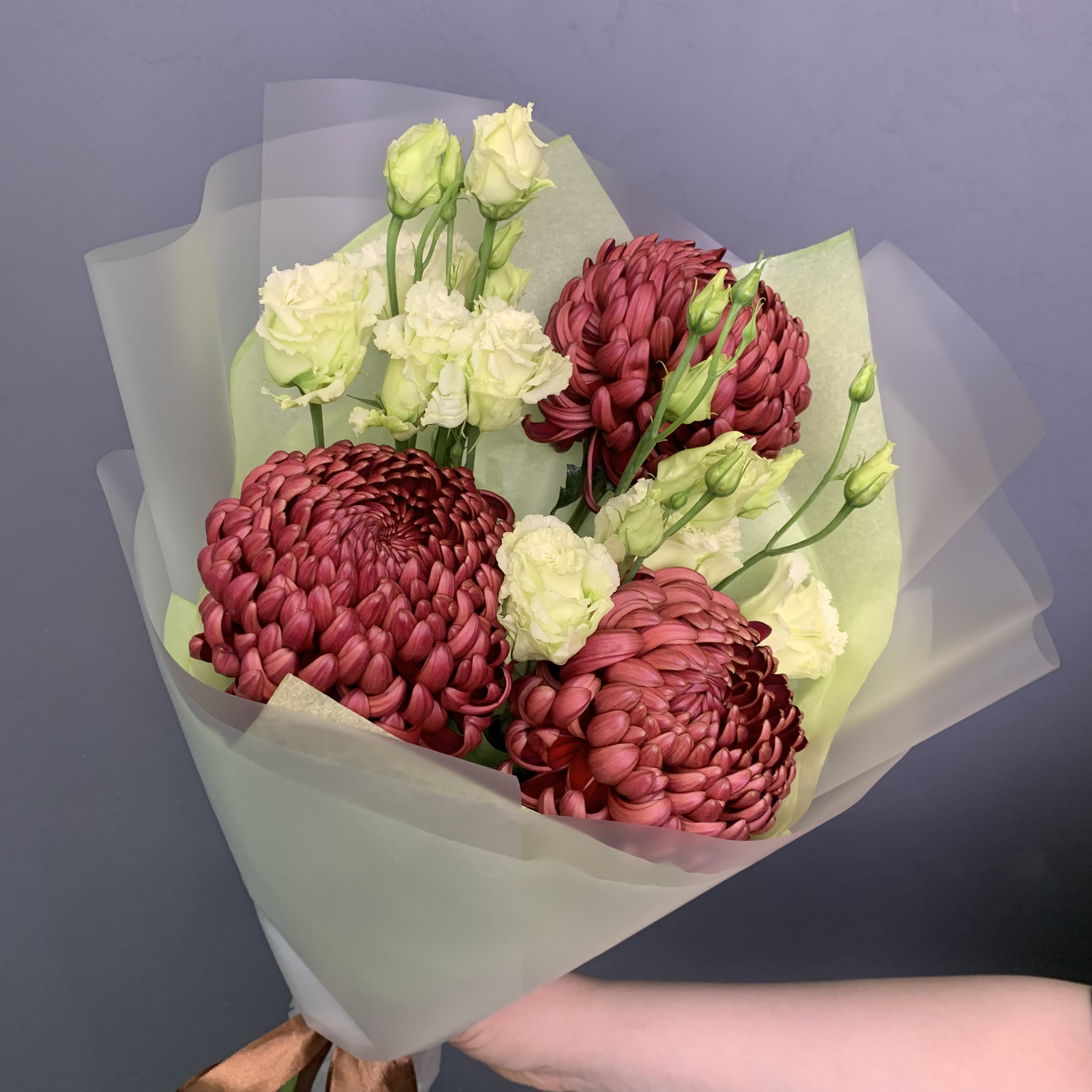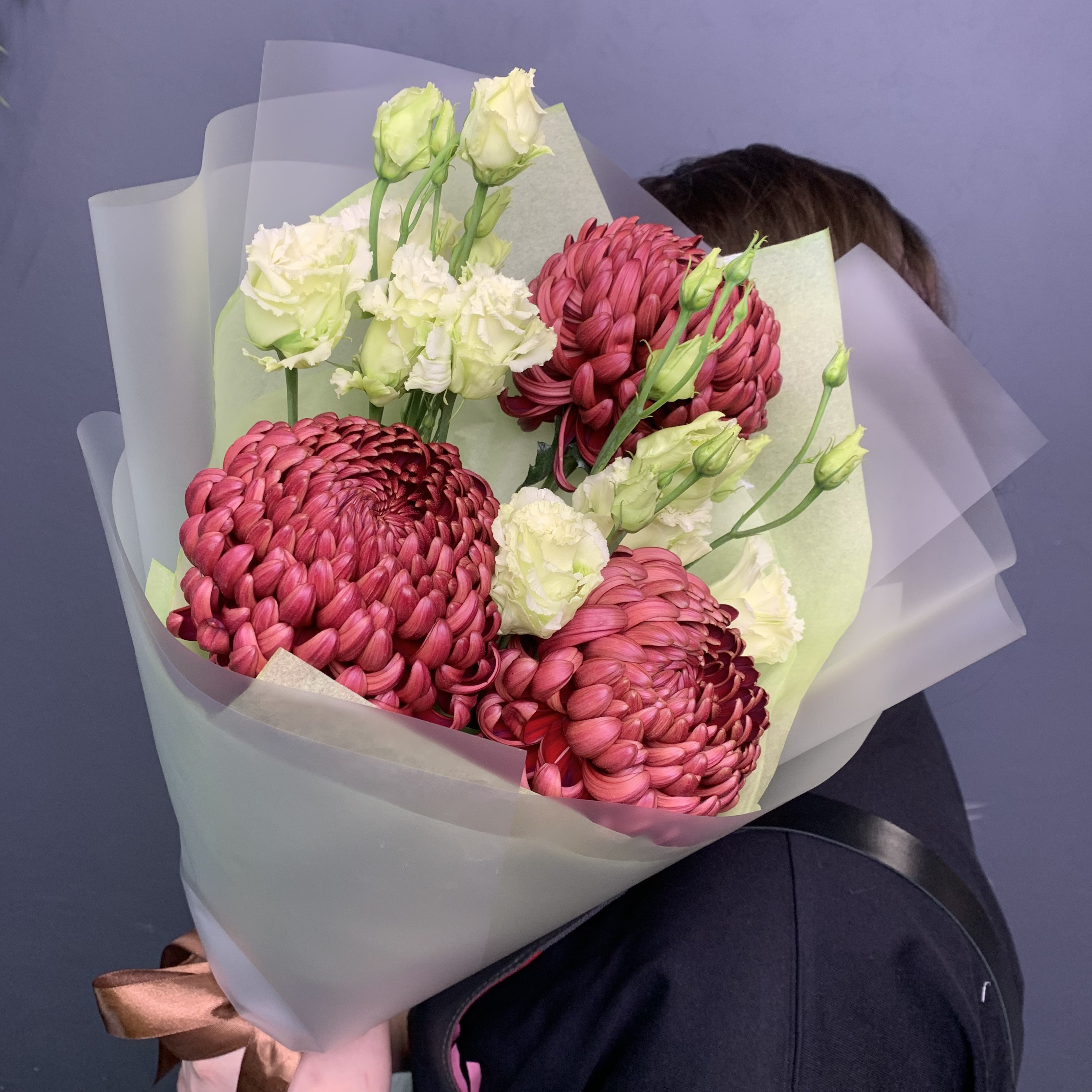 Букет "Брауни" (хризантема Бигуди ,эустома) – купить за 3 600 ₽ | УНА ФЛОР