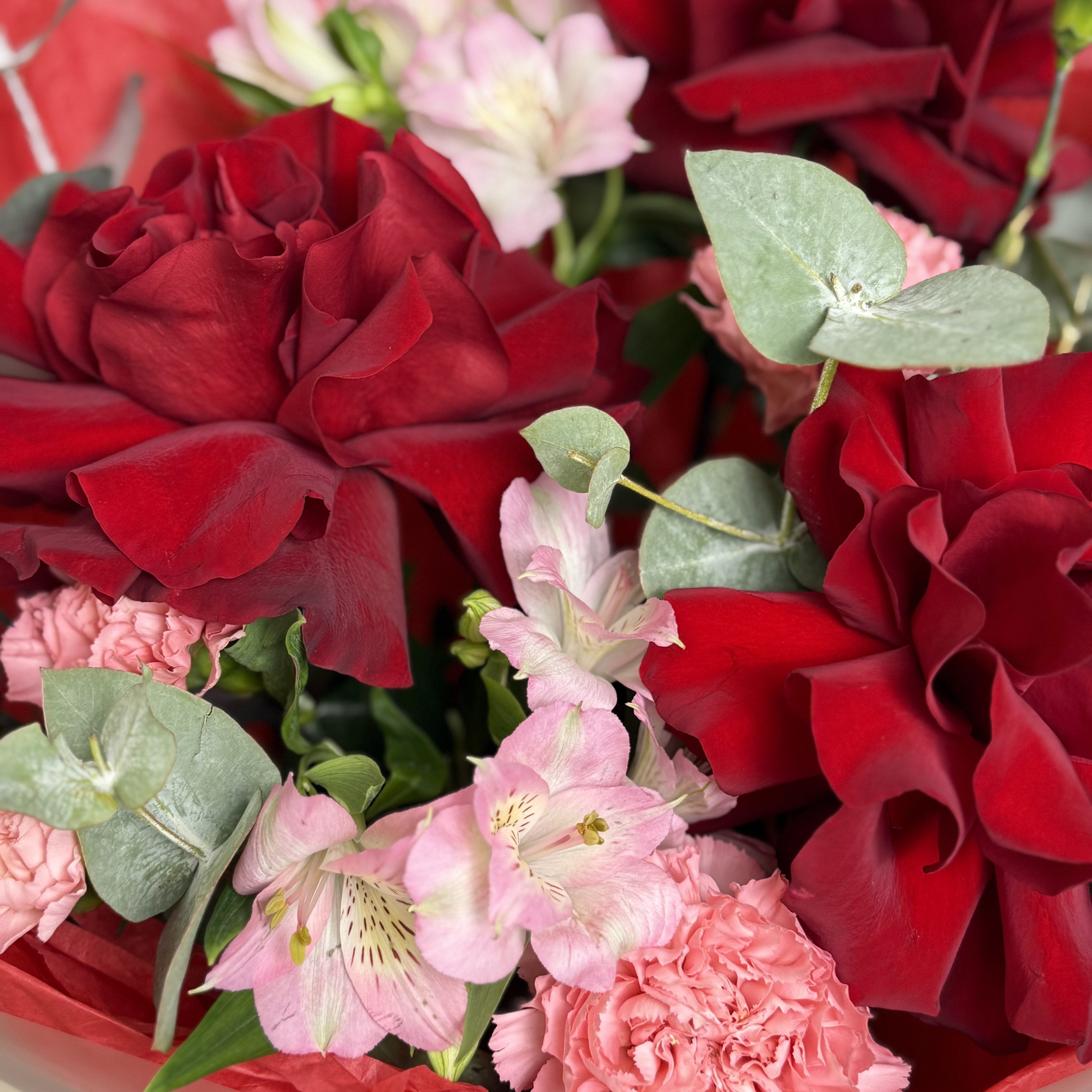 Заполните вазу водой не менее чем на 2/3, добавьте пакетик подкормки для срезанных цветов, который мы приложим к Вашему заказу, и поставьте букет в вазу.