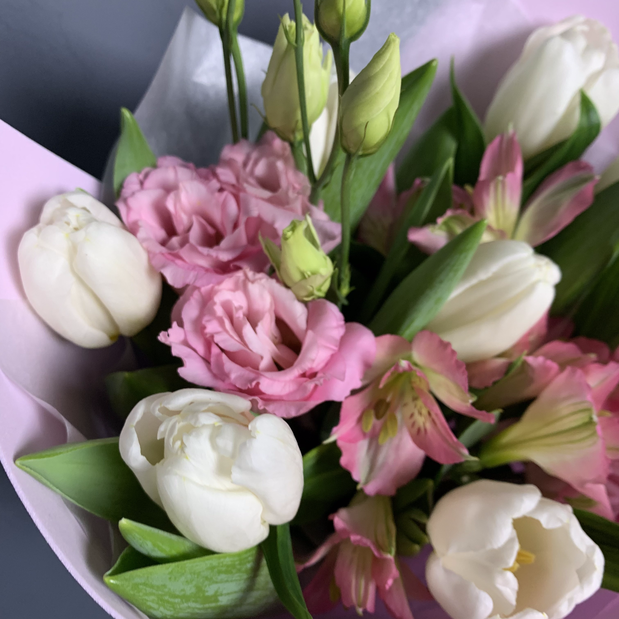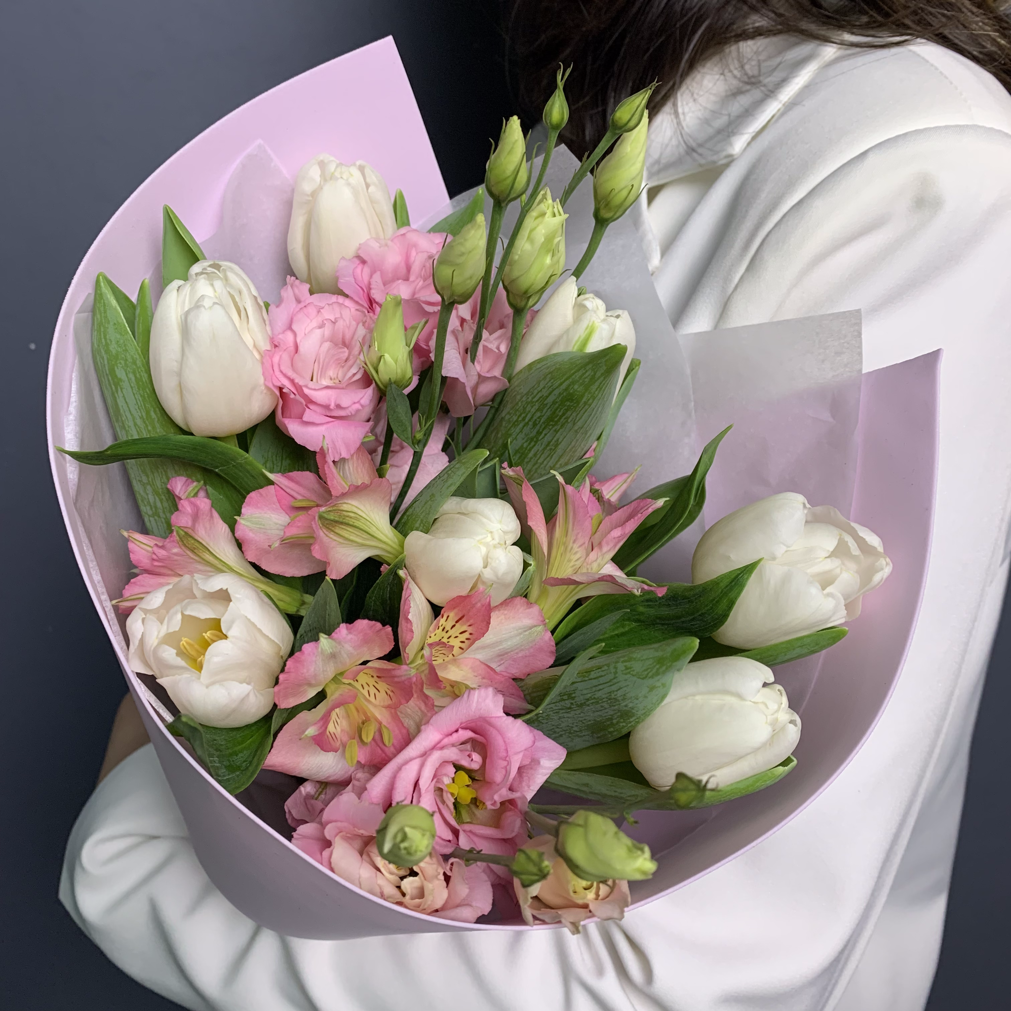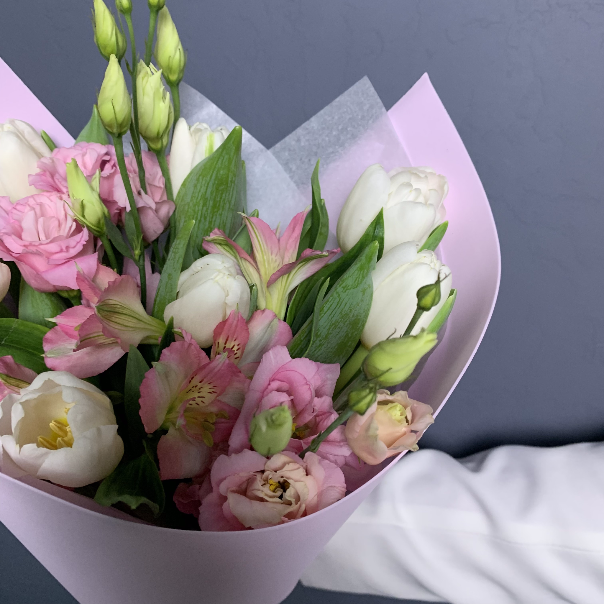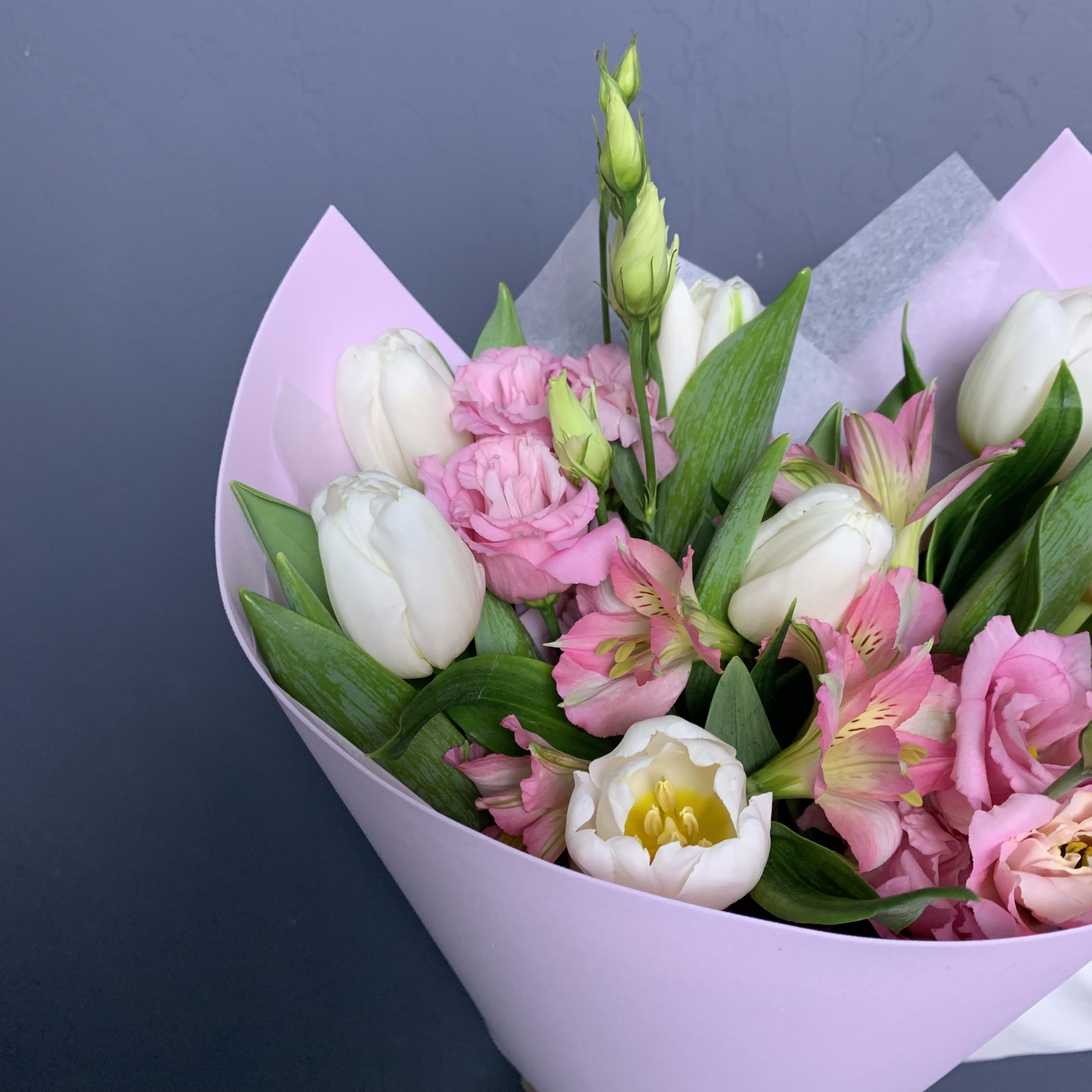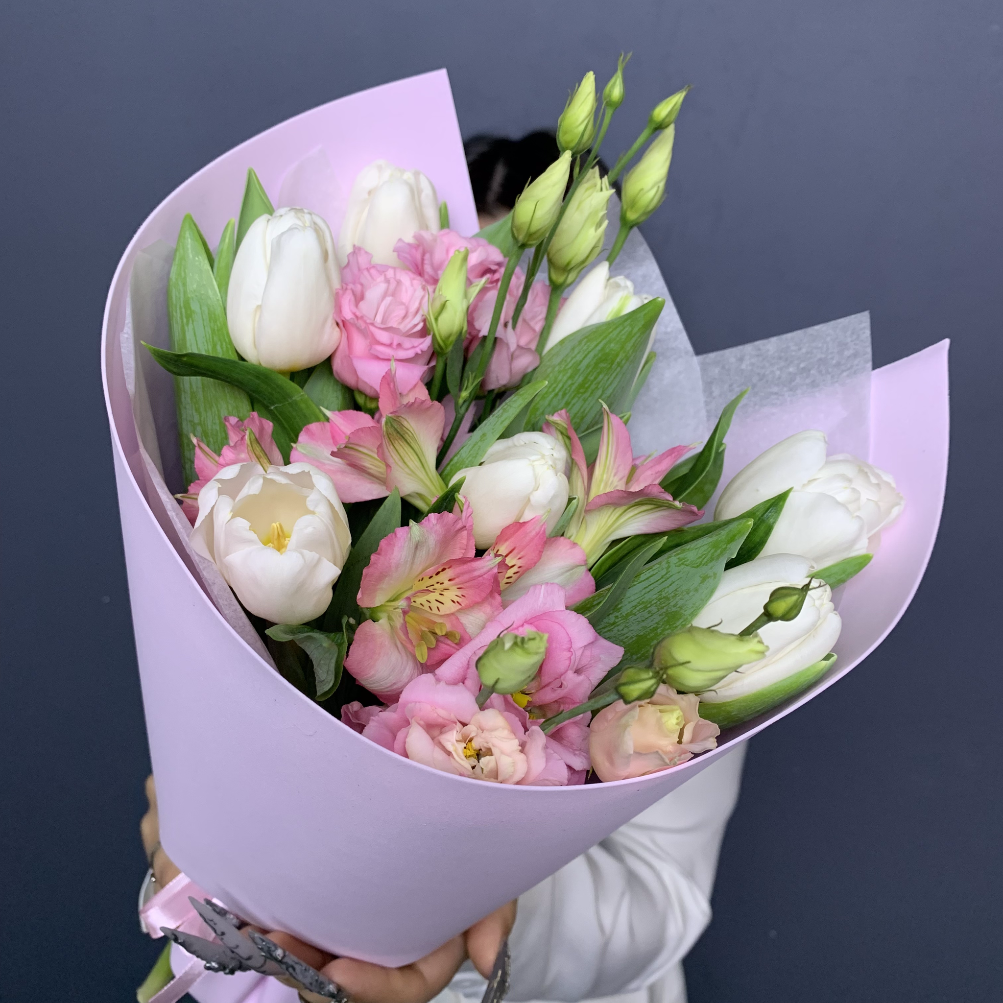 Букет "Линда" (Тюльпаны, Эустома, Альстромерии) – купить за 3 600 ₽ | УНА ФЛОР