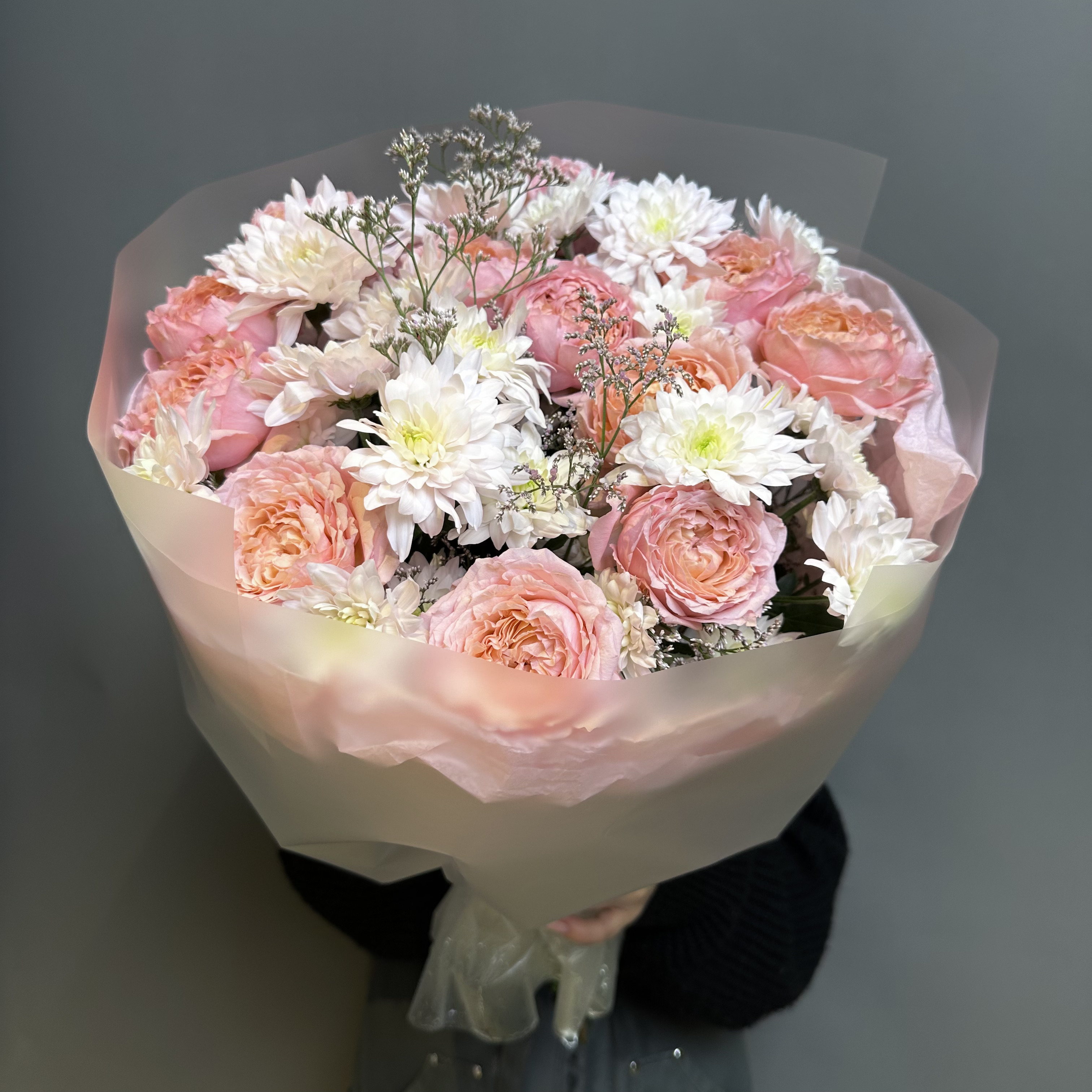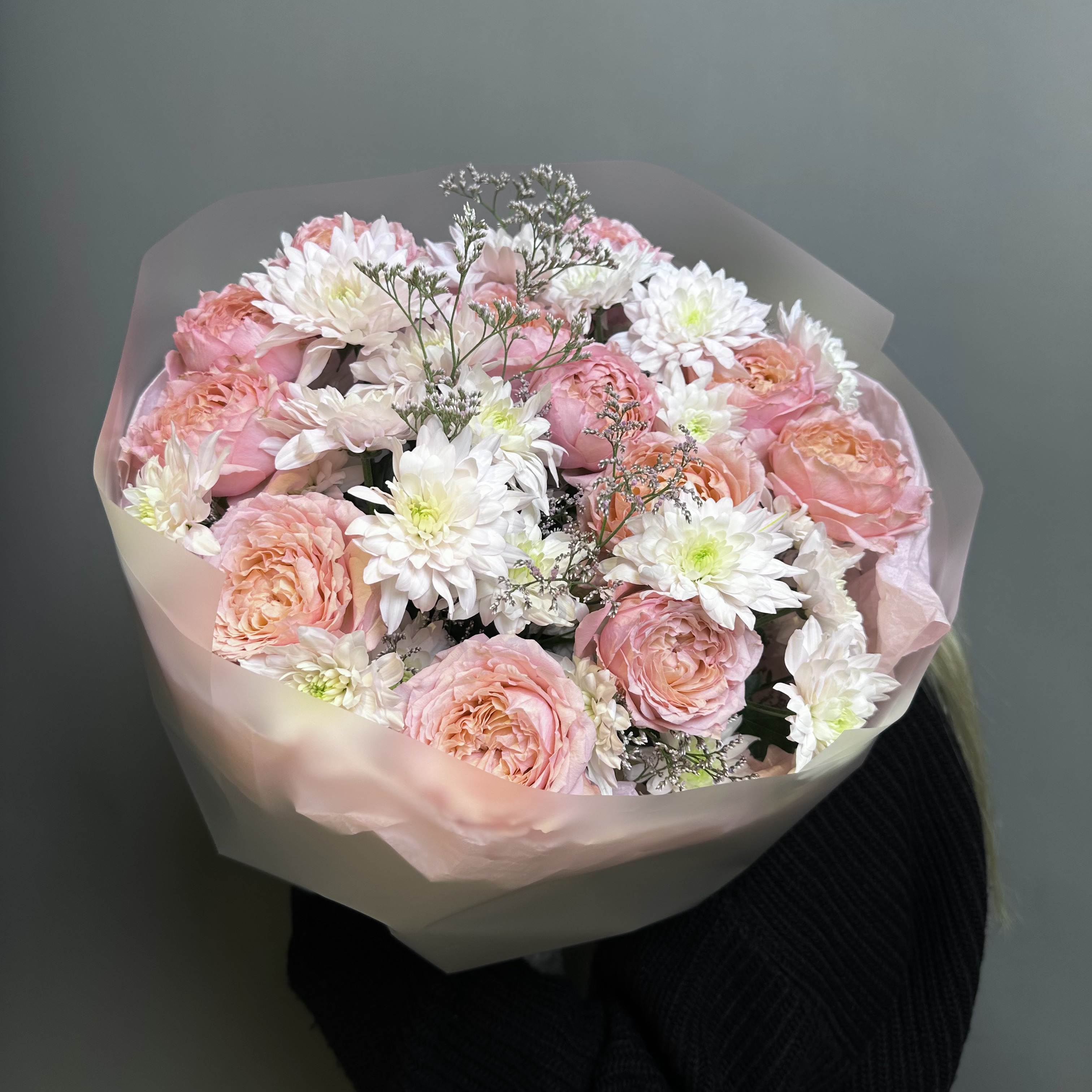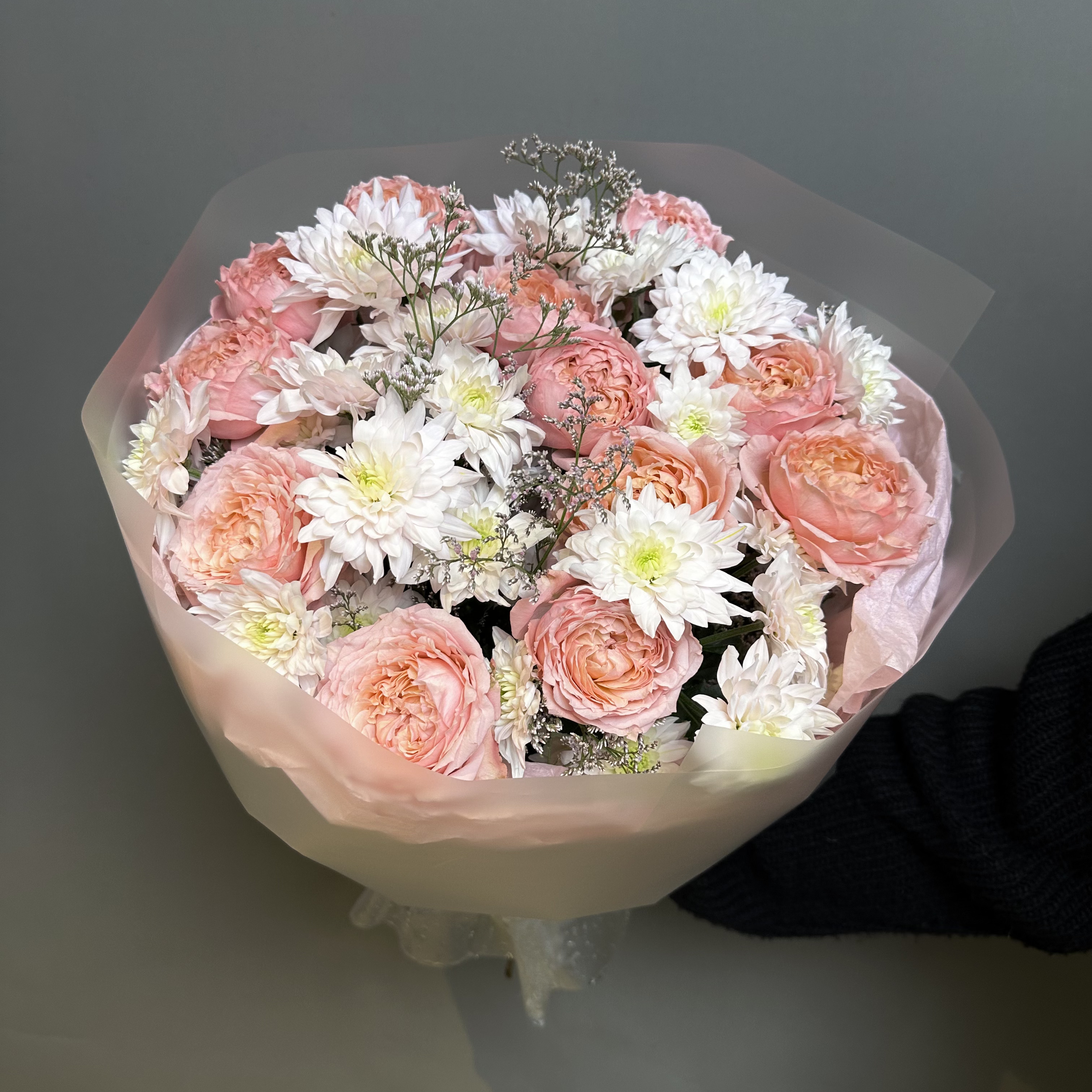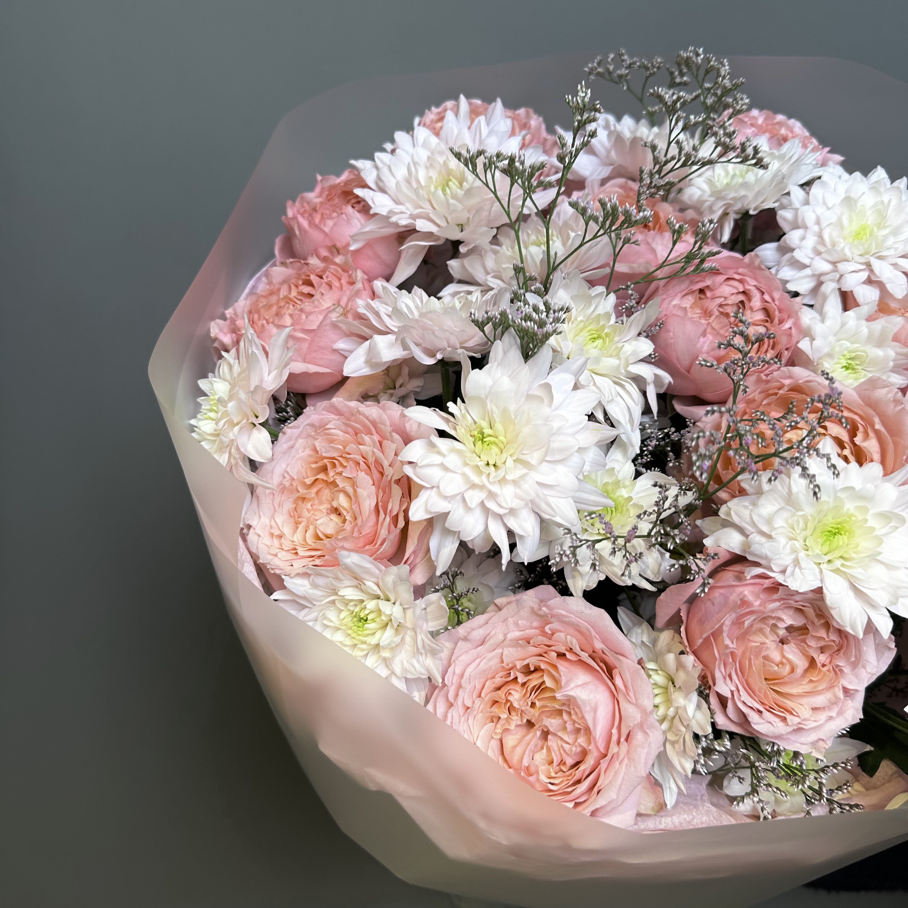 Букет"Лея"(кустовая пионовидная роза ,кустовая хризантема) – купить за 5 450 ₽ | УНА ФЛОР