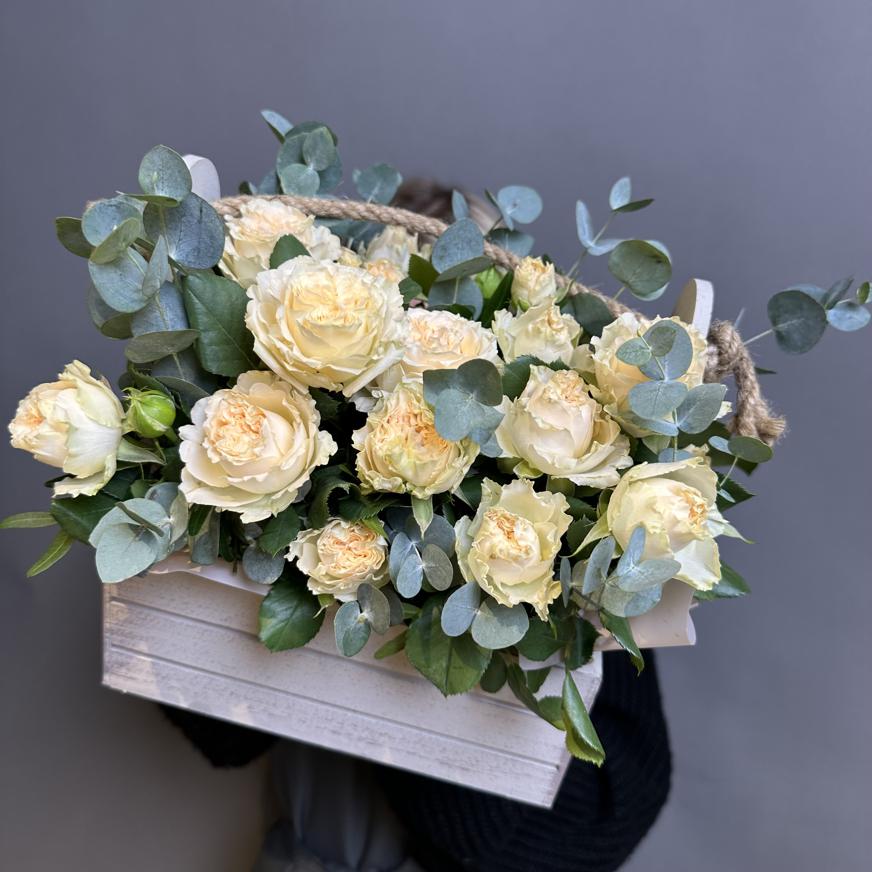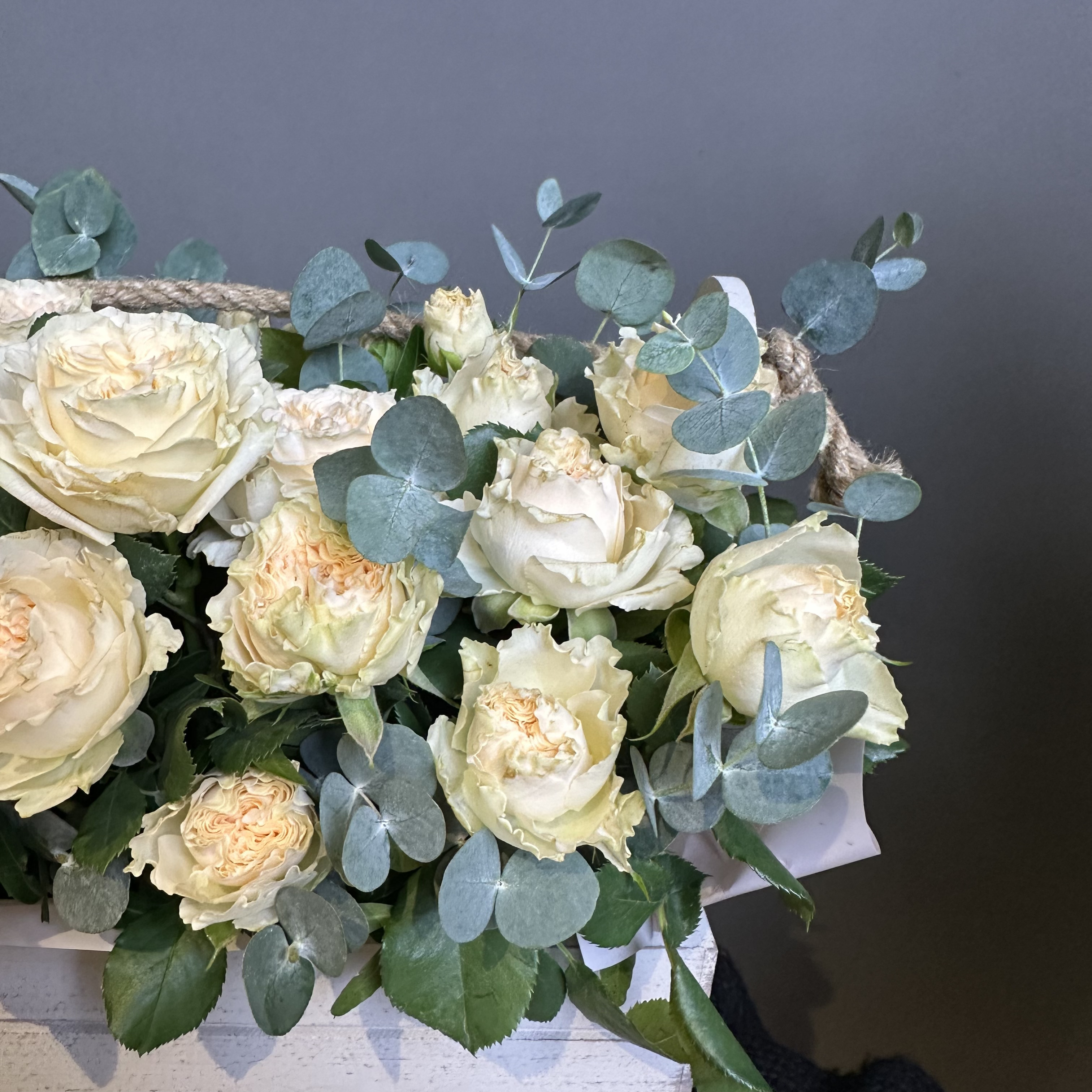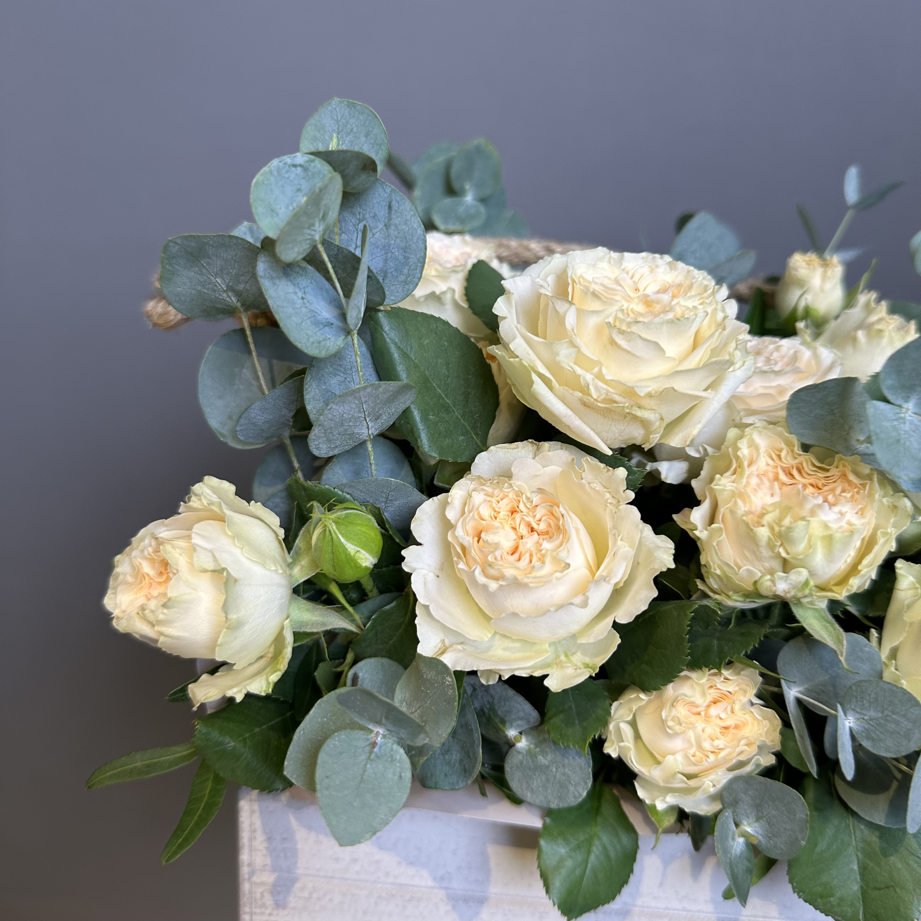 Композиция "Саммер М"(кустовая роза ,эвкалипт)