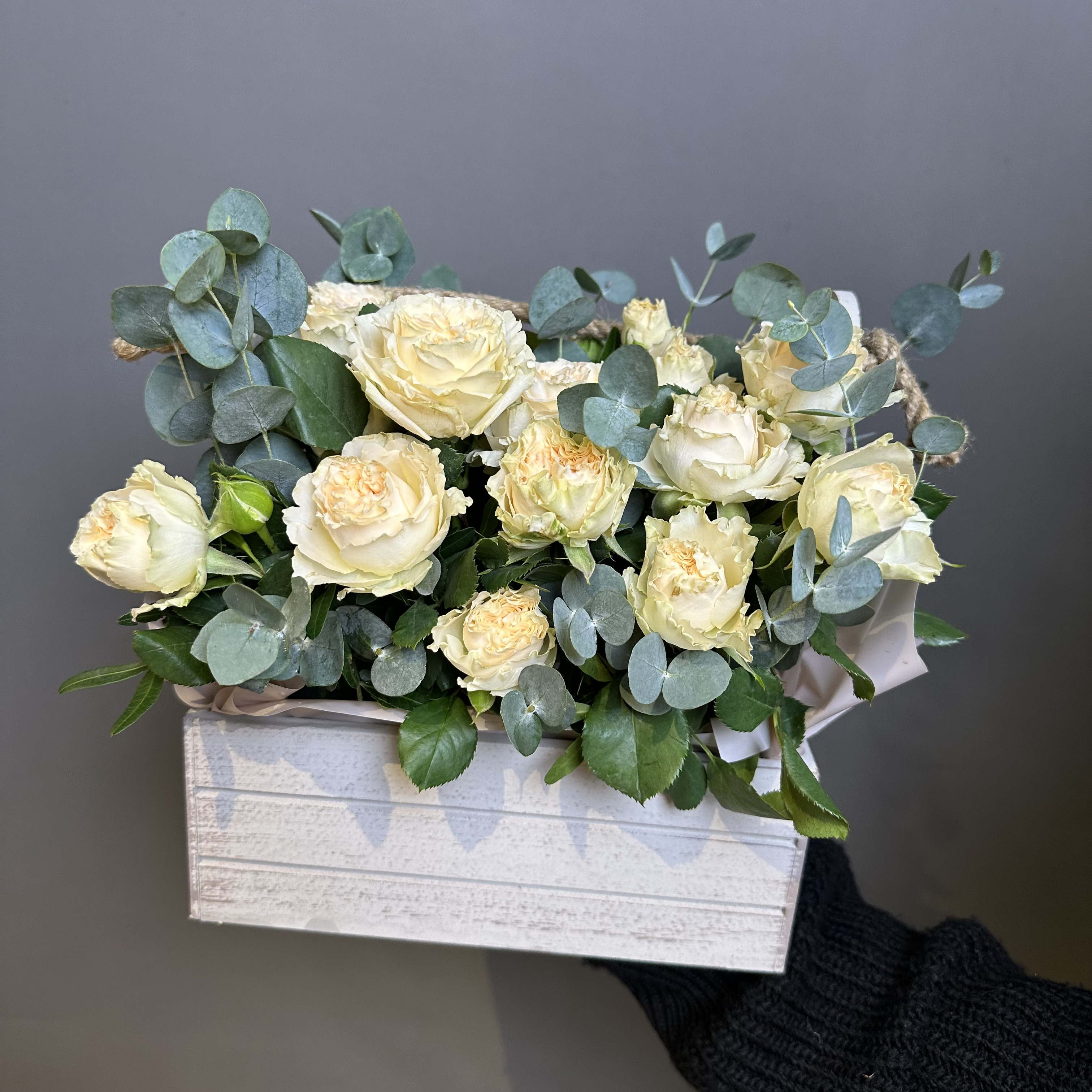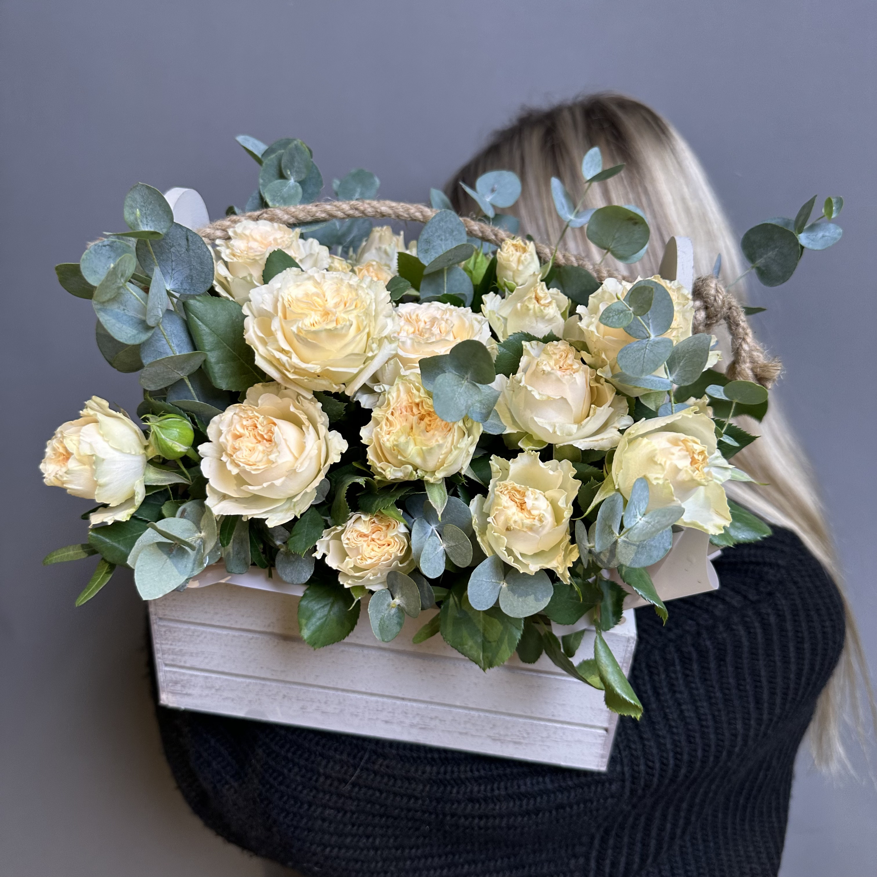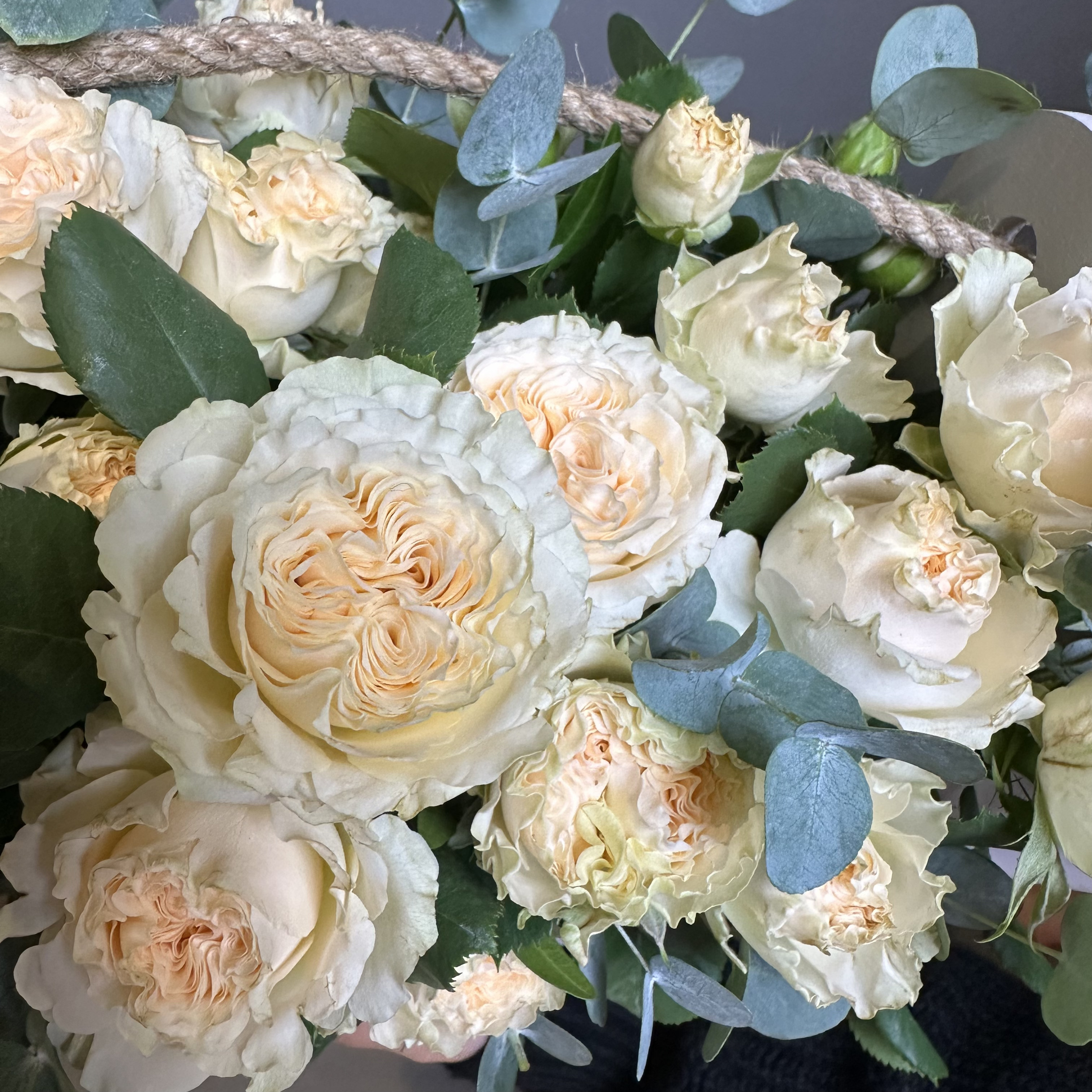 Композиция "Саммер М"(кустовая роза ,эвкалипт)